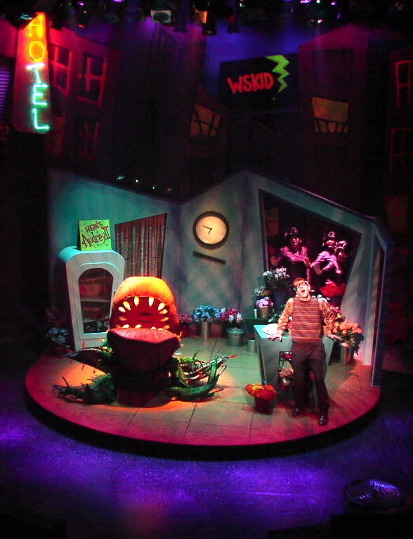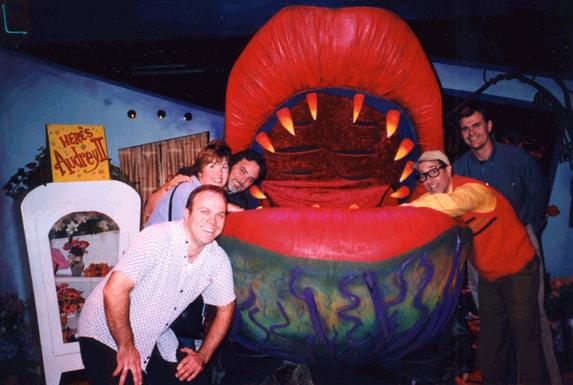 A post show photo with friends after a performance as Seymour in LITTLE SHOP OF HORRORS at ZACH Theatre in Austin, TX.